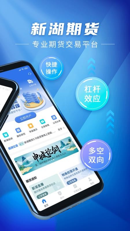 新湖期货开户交易是一款强大的理财软件,用户在线上就能够清楚的进行查看,了解更多的理财信息,你可以随意的选择,找到需要的理财资讯,更好的进行理财,快速的解决你的理财需求,为用户提供更多的帮助,增加你的使用体验,在平台里能够放心的进行使用,获得更多的帮助;大量的理财信息推送在平台里,具有期货交易、期货行情、期货开户等功能,用户在线就能够快速的进行查看,让你在线就能够更好的进行使用,实时的了解理财的数据信息,你可以稳定的进行交易,得到专业的理财服务,使用户可以尽情的使用,快速的解决你的理财需求。