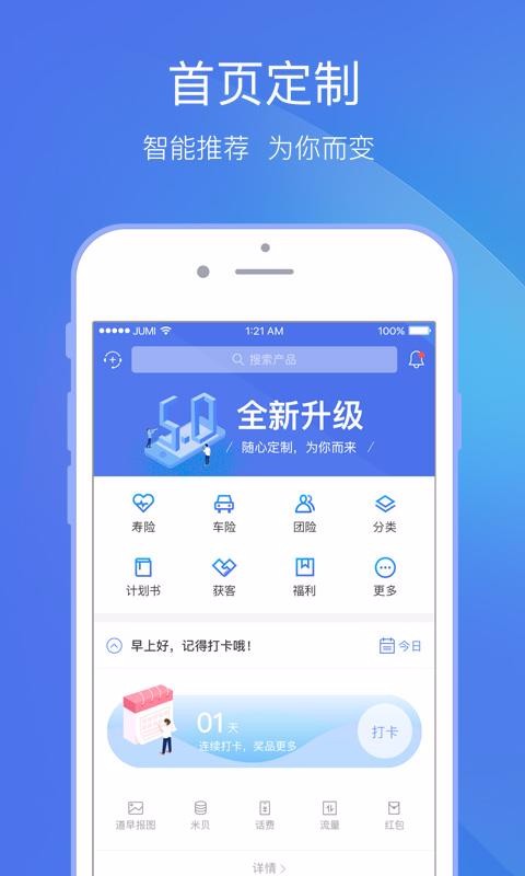 聚米app是一款家庭保险服务软件,让保险服务变得更真实,提高保险服务的质量,保险服务变得更便捷,提高服务的质量;软件提供了众多的保险服务,满足你的各种需求,并将保险进行分类管理,了解保险服务的情况,保险服务更贴心,找保险更方便;通过分类快速查找到保险并根据计划书了解保险的详细信息,提高保险管理的质量,享受更完整的保险服务,让保险服务变得更真实,并快速购买保险;购买保险之后,根据保险的类型进行上门服务,提高买保险的乐趣,保险服务变得更真实,给你更好的保险管理体验,快速下载软件销售舒适的保险服务吧。