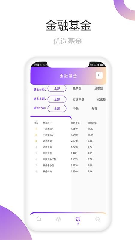 5、在金融基金界面中,用户可浏览到基金的排名情况