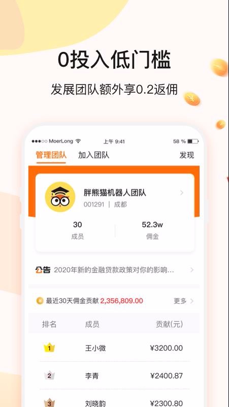 3、查看团队的信息,了解团队的情况,让你对团队有全面的了解,提高团队管理的能力,提高贷款服务的质量;
