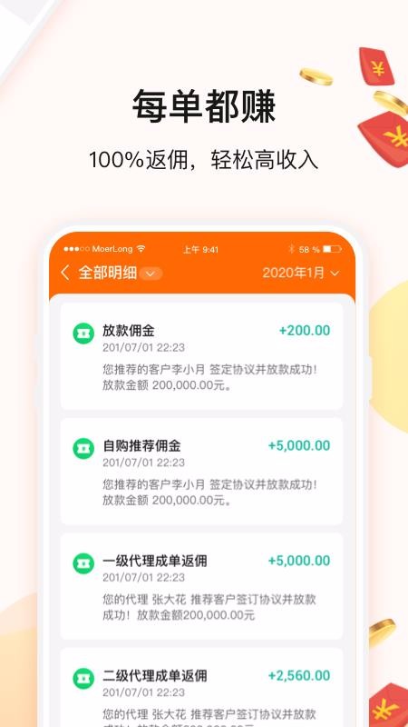4、详细的记录么单的佣金,了解佣金的情况,便于统计个人的收入,提高赚钱管理的质量;