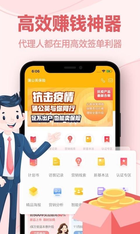 蒲公英保险是一款保险展业签单平台,为保险代理人提供专业的展业签单服务,可以帮助代理人获得更多的收入,助力你实现财务自由;用户可以邀请更多的人加入,创建自己的团队,可以获取团队的收益,续保也可以获得奖励;软件中厒用户提供海量的保险产品,有不同的险种,你可以在线查看保险的详细信息,并结合客户的情况,智能推荐客户合适的保险,让客户在线购买保险下单,让你获得销售的收益;同时还有很多明星在线传授沟通的技巧,可以帮助你更好的与客户沟通,让你的沟通更加有效;感兴趣的朋友下载使用吧!
