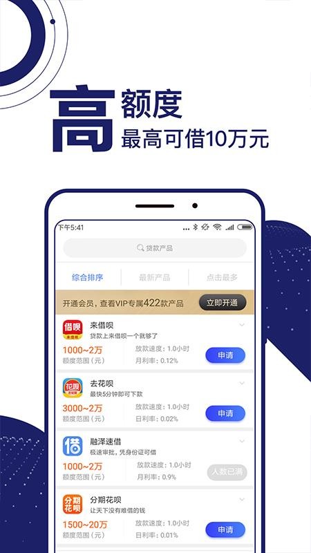 6、操作十分的简单,只需选择需要的借款产品就可以在这里快速的一键申请,能够极速的为您放款;