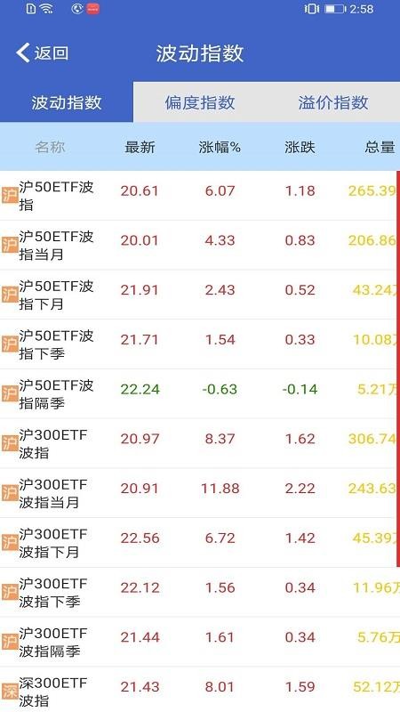 3、波动指数,对市场的波动指数进行了记录统计,用户可快速对比;
