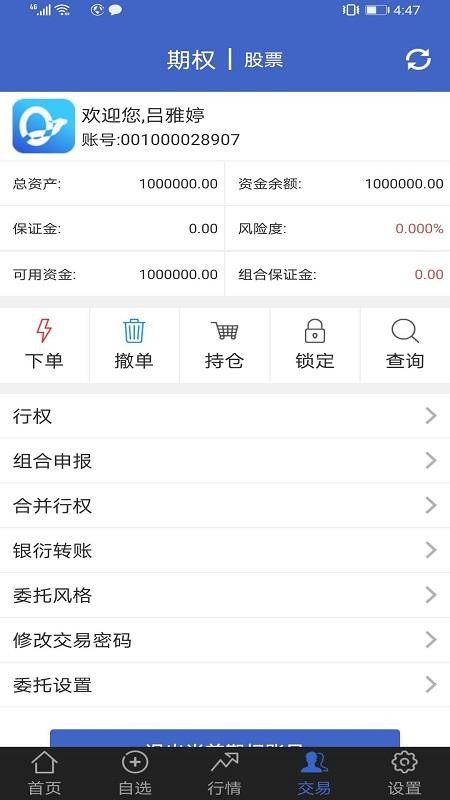 6、实时监测用户的持仓股票和期权,用户可自由的进行浏览;