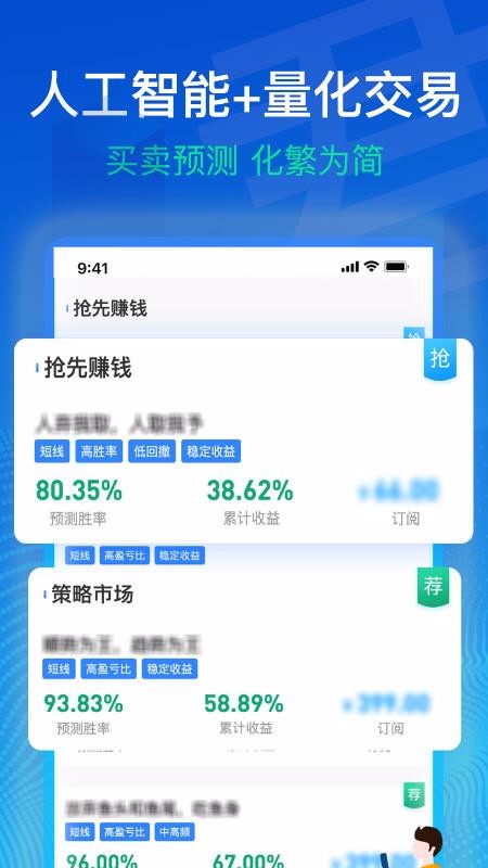 6、精准的获利提醒内容,策略市场里面直观的给出了建议卖出或买入的策略信息;