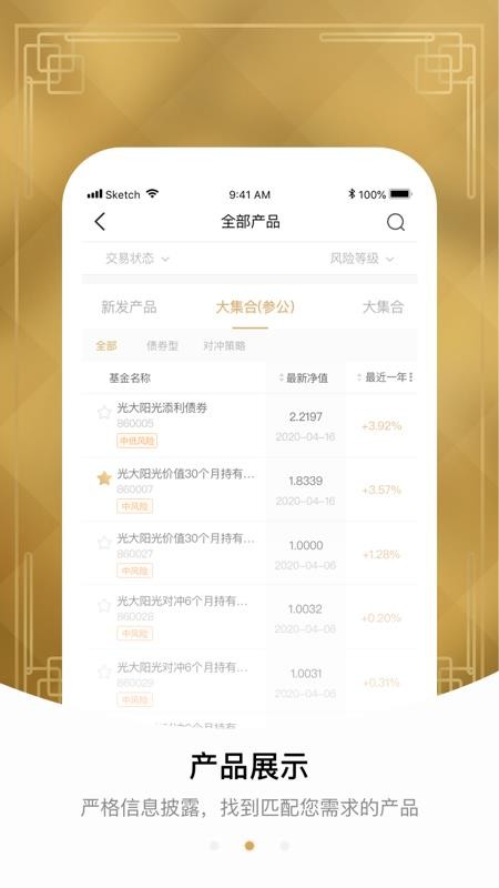 光证阳光资管可以管理用户的资产,帮助用户更好的进行理财,让你在平台里能够赚取更多的收益,解决用户的理财需求;平台里有专业的理财工具,进入平台之后就能够获得优质的服务,大量的理财产品全部展示在平台里,进入平台就能够清楚的进行查看,了解产品的具体信息,你可以根据自己的资金情况进行选择,让你在平台里更好的进行理财,快速的解决用户的问题,让用户获得优质的服务;而且平台把优质的理财方案全部展示出来,进入平台里的用户能够了解更多的投资信息,你可以放心的进行使用,全面的满足你的理财需求。