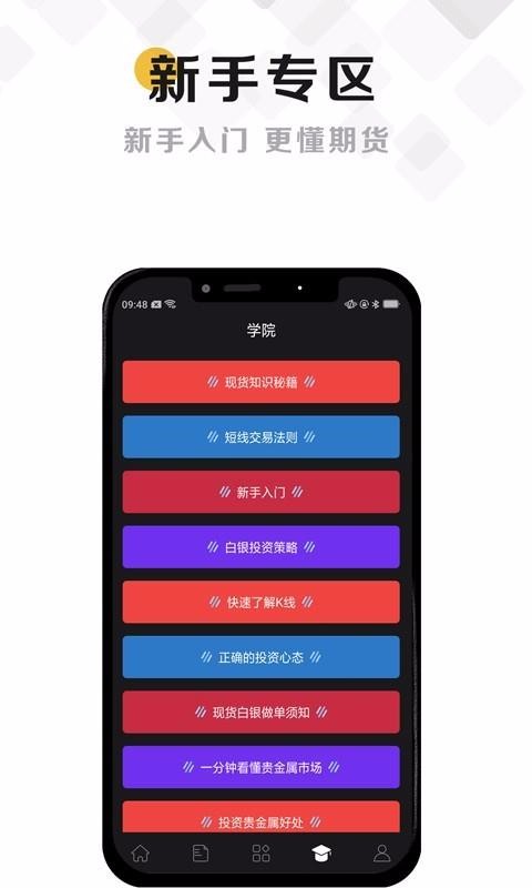 4、直接进入学院页面,立即查看现货知识秘籍以及短线交易法则等