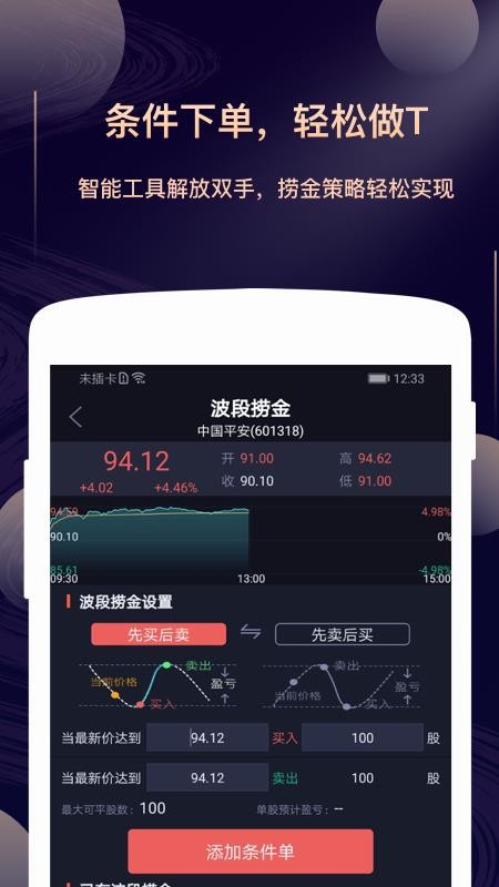 4、提供条件单功能,用户可以自由设置价格条件,满足价格要求后即可自动购买;
