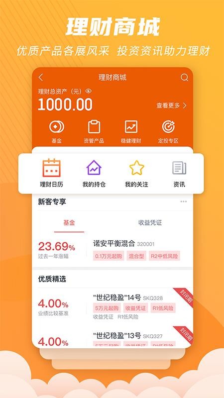 3、进入理财商城,能够了解各种理财信息,更好的使用