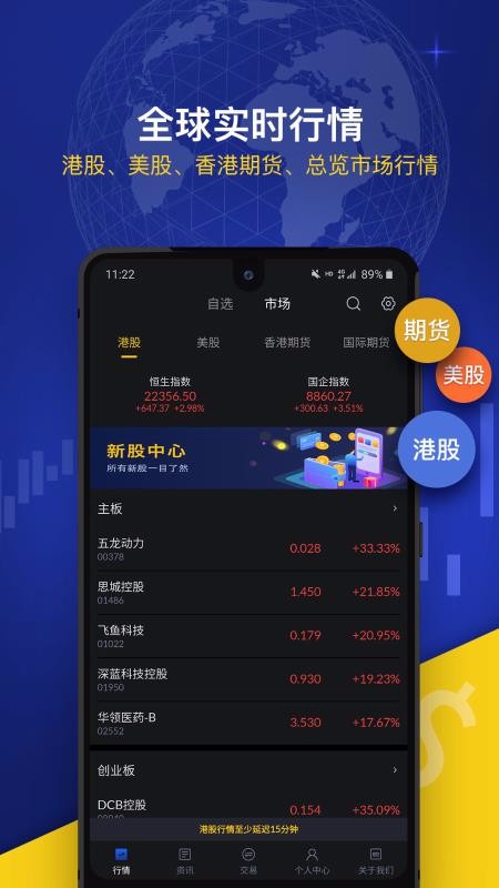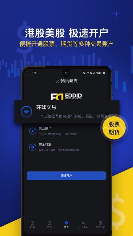 艾德一站通app是多样化的股票交易服务软件;您可以随时在这里便捷开户,助力您及时有效的开户,能够节省您的办理时间;该平台还提供资金托管功能,可以安全保管资金;一个账户即可进行全球交易,支持在线购买金融产品,平台实时推送港股、美股以及期货,您可以自由选择;您还可以随时查询持仓以及当日委托消息,助力您更明确的交易;推送全球实时行情,支持您按照分类查询最新行情,还可以直接检索市场行情;这里的资讯实时更新,动态实时显示,您可以随意获取更多有价值的金融行业信息。