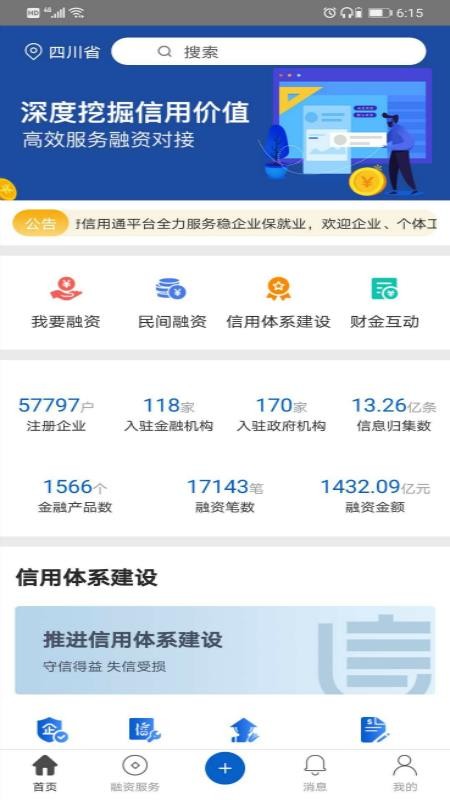 遂宁信融通app是一款为各个企业提供融资和信用服务的软件,让企业能够轻松找到各种融资产品,了解各种信用信息;应用中有多种功能,用户可以在这里找到不同类型的融资产品,根据自己的需求和企业资产情况选择更合适的进行融资;用户通过软件可以找到多种多样的贷款产品,快速的提交贷款申请,让自己的企业能够更顺利的经营;在这里,用户还可以看到各种守信企业的详细信息,了解各企业资质和信用情况,从而更放心的和企业进行合作;快下载这款软件试试吧,更加方便快捷的进行融资,轻松进行各种贷款。