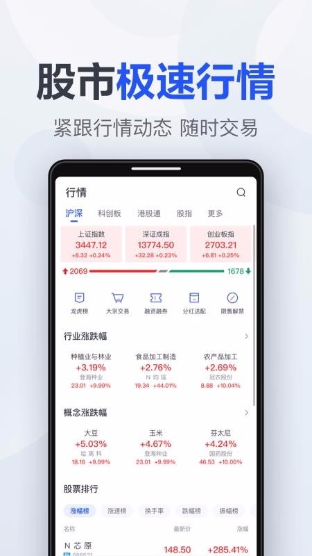 1、拥有丰富的行情栏目划分,该页面有沪深栏目、科创板以及港股通等多种栏目;