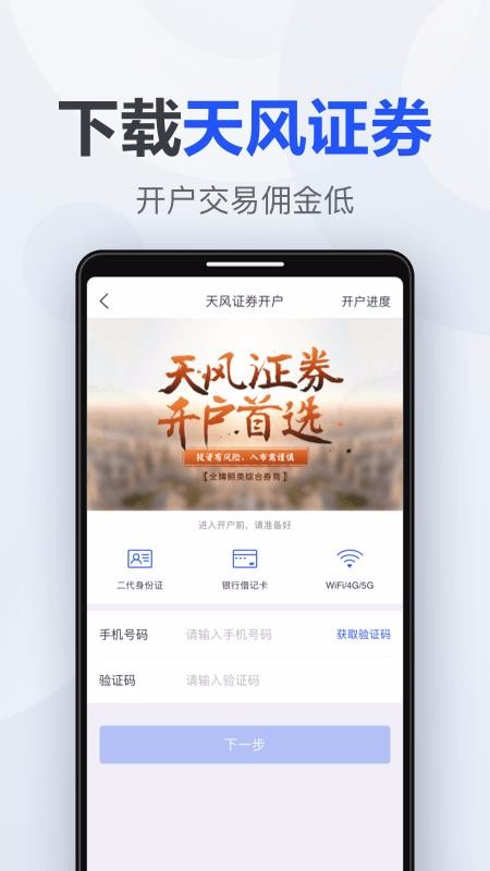 天风证券是一款证券交易服务软件,提供证券开户、行情查询和快讯阅读多种投资理财服务;为新用户提供了非常清晰的开户流程引导,只要点击打开开户功能页面后就会出现相应的操作说明引导内容,另外还将不同的步骤进行了划分,便于用户按照其中的引导完成开户操作;交易服务中心为用户划分提供两种交易服务栏目,分别是普通交易服务栏目和融资融券交易栏目,可以在普通交易栏中看到多种丰富的交易服务图标;在资讯页面中提供多种新闻资讯栏内容,其中有要闻、题材以及快讯等栏目,可以在快讯栏目看到今天每个时刻的最新资讯信息。