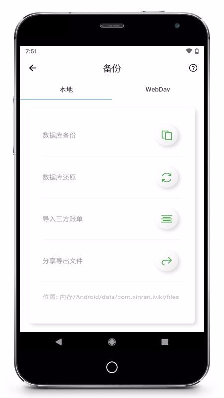 6、提供多种本地备份服务列表,里面有数据库备份、数据库还原以及导入三方账单等功能;