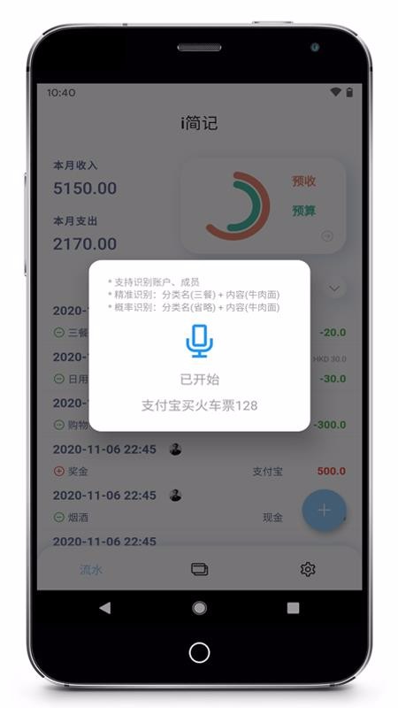 4、点击麦克风图标,立即输入记账语音内容并快速记账