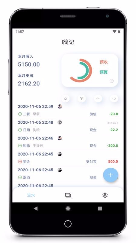 5、马上记录新的账目数据,通过点击流水页面中的加号能添加更多数据内容;