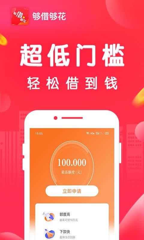 够借够花app是一款功能强大的金融理财软件应用,它能帮助用户在缺钱的情况下,快速的进行贷款,为用户节约了时间,提供了极大的便利;该应用为广大用户提供了海量的金融贷款产品,涵盖了多个种类,用户可以随意的选择进行贷款,无任何限制,能充分满足用户的贷款需求,给予优质的服务体验;在这里,使用身份证即可发送申请,通过审核就能得到申请的贷款额度,非常方便,无需任何抵押和担保,让用户能以最短的时间得到贷款,方便处理一些着急的事项;还等什么,如果有需要,那就赶快下载够借够花app体验一下吧。