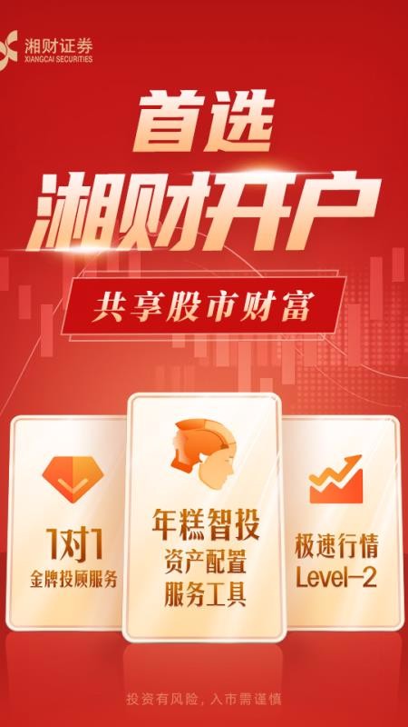 湘财证券股票开户app是专业的金融服务办理软件;这里提供极速开户功能,用户可以随时选择开户,无需繁杂的手续,助力用户轻松开户;该平台将会实时显示申请进度,可以随时查看详情,有效维护用户的开户权益;不仅如此,该平台还有资产配置服务工具,致力于帮助用户合理的规划资产,从而有效的获取更多收益,成为一个理财达人;在这里,用户还可以选择咨询投顾,可以获得一对一的优质服务,帮助用户及时解决更多的服务问题;湘财证券股票开户app还有超多实用功能,需要的朋友赶紧下载解锁体验吧。