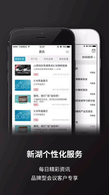4、划分多种资讯栏目,这里面有资讯和直播两个栏目,资讯栏中由划分了新湖头条、期权研究以及早盘提示等;