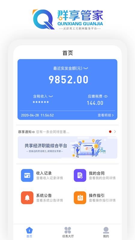 群享管家是一款线上服务软件,可以帮助用户计算账单信息,准确的记录用户的收入情况,把你的支出和收入清楚的展示在平台里,用户能够实时的进行查看,快速的处理你的问题,让你在使用的过程中能够了解各种记账功能,用户可以轻松的使用,实时的管理你的账单信息;这款软件能够帮助公司企业更好的记录工资的结算情况,提供优质的税务合规的解决方案,让你更好的管理工作情况,增加你的使用体验;除了可以记录账单之外,在平台里能够清楚的了解公司的具体情况,各种工作状态全部展示在平台里,能够实时的进行使用,获得优质的管理服务。