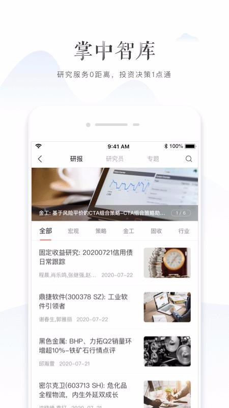 1、提供掌中智库,可以直接查看研究报告,支持按照分类详细查看;