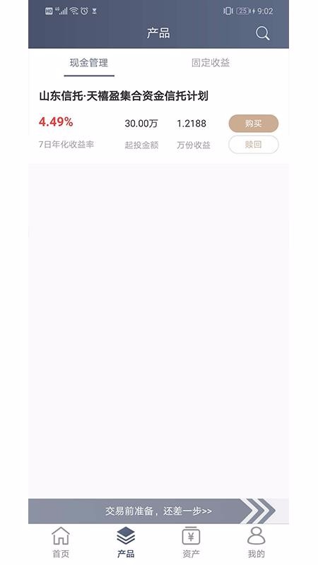 3、点击进入产品页面,选择现金管理或固定收益查看相应的产品