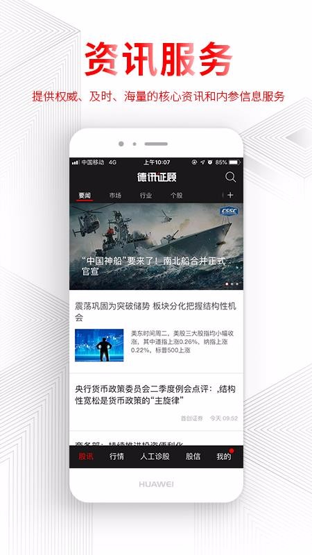 德讯证顾app是一款简单方便的金融服务软件,让你享受更好的股票服务,知道更全面的股票资讯;软件提供了海量的股票资讯,并将股票进行分类管理,还实时更新最新的金融资讯,提高股票管理的能力,资讯的阅读更方便;详细的记录股市的报告,让你了解股票的信息,知道股市的变化情况,便于选择交易,提高股市管理的能力,让你的管理更方便;有专业的人工诊股服务,为诊断股票的信息,知道股票的前景,便于选择投资,提高投资管理的质量;还有1V1的服务,为你提供更专业的服务,了解更好的股信信息,提高股信管理的效率,便于投资。