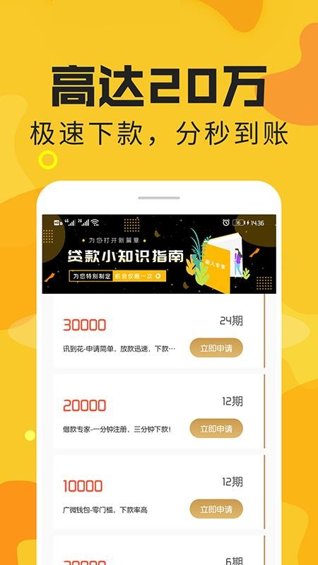 3、灵活的借款模式,提供12期、24期、36期的产品,根据自己的情况选择;