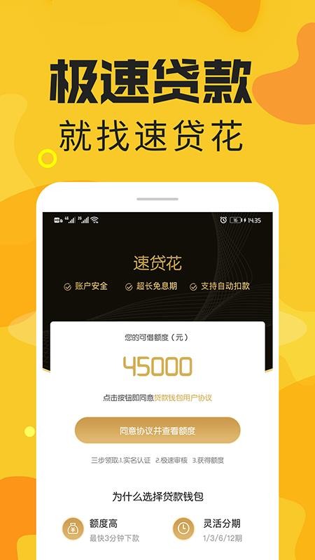 1、极速放款,平台实现5分钟申请,全程在线审核,10分钟放款,及时提现使用;