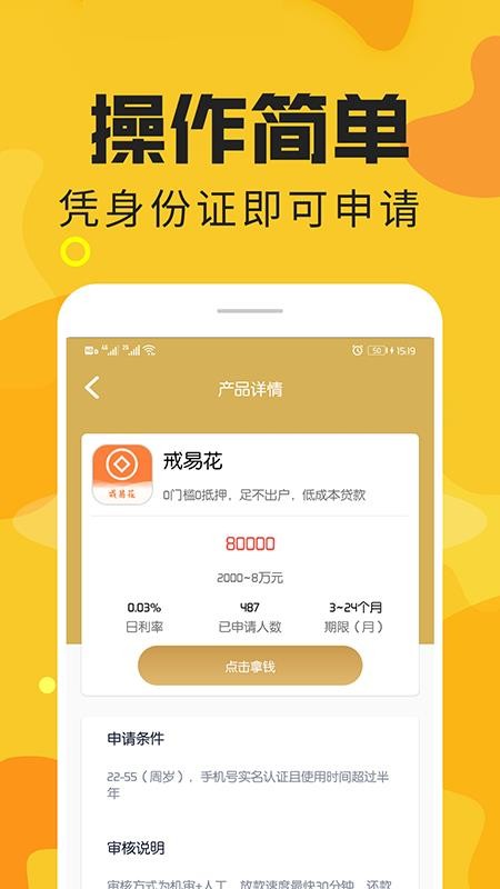 6、轻松借钱,审核的进度可以随时查看,提供一键借款,非常方便;