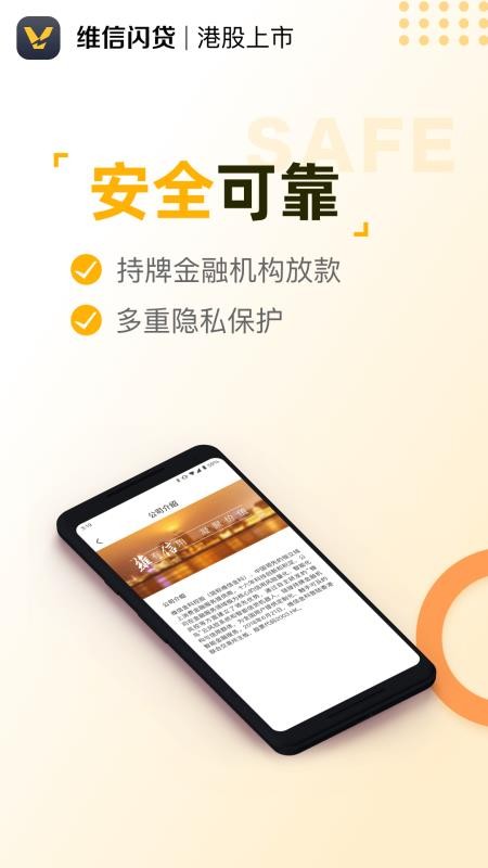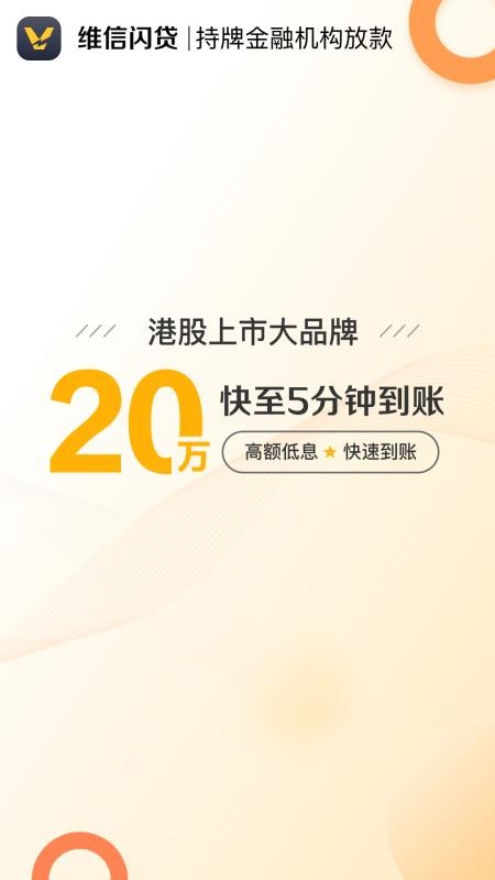 维信闪贷app是一款现金贷款软件,这是一个大品牌贷款产品,通过CFCA安全认证的贷款产婆,安全可靠,实时保护用户的隐私,让用户可以胆大放心的申请;产品可以贷款的额度最高可达20万元,满足用户的日常贷款的数额要求;并且申请的流程非常简单,只需要将自己的身份证信息输入,快速在线审核,通过后就可以在线申请贷款,非常方便;用户还可以随时查看产品的相关信息,提供详细的介绍和年化率的信息,知晓基本的利息数据,便于用户更好的贷款;选择合适的贷款金额,结合自己的财务能力,以便更好的还款。