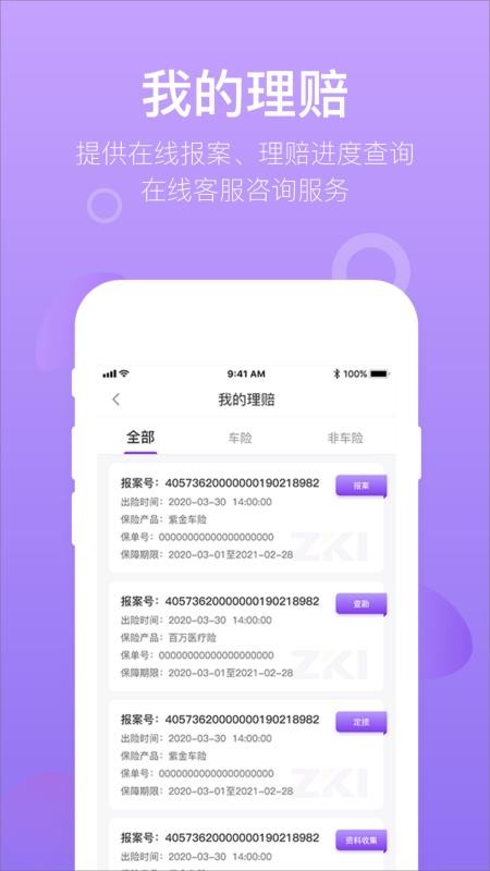 4、应用中有在线理赔服务,帮助用户更加快速的进行保险理赔,及时获得理赔金;