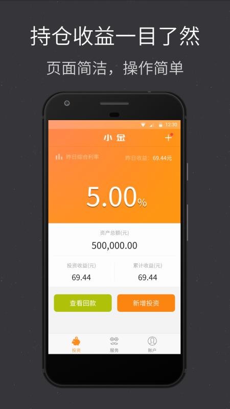小金是一款理财软件,用户在平台能够了解大量的理财产品,增加你的使用体验,帮助用户稳定的进行理财,通过平台的使用能够赚取更多的收益,解决用户的使用需求;这款软件提供的投资产品非常的丰富,用户可以在平台里找到自己需要的理财信息,使用的信息全部经过详细的讲解,用户在线就能够实时的进行查看,帮助你在使用的时候掌握优质的理财知识;而且平台能够更好的保护用户的资金安全,用户可以放心的进行使用,把自己的理财数据清楚的展示在平台里,方便你更好的使用,用户能够每天了解最新的理财信息,快速的使用。