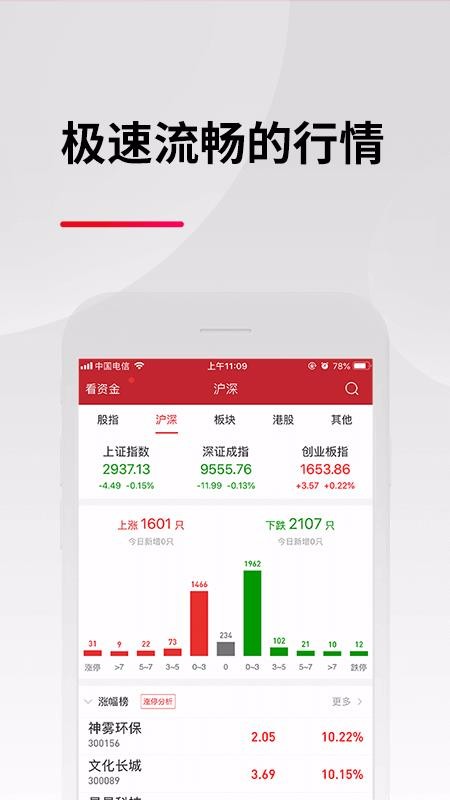 6、清晰明了的行情增减统计图,每一个版块栏目中都展示了今日上涨指数、下跌指数等多种统计数据;