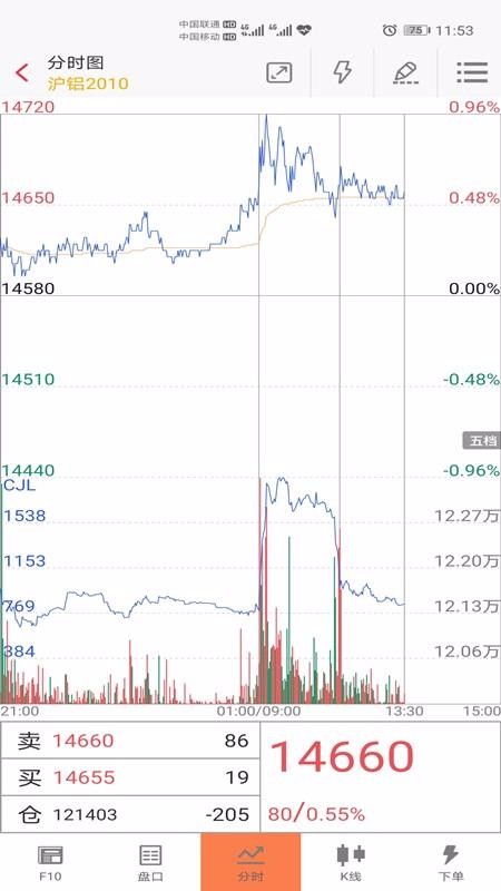 6、查看分时信息,知道数据的情况,了解期货的市场波动