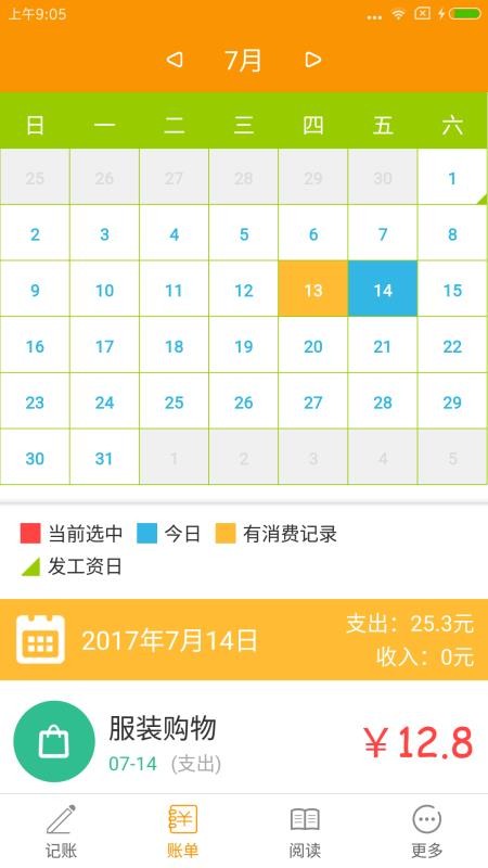 2、用户有消费记录的日期和发工资的日期会在日历上进行标注,方便用户了解;