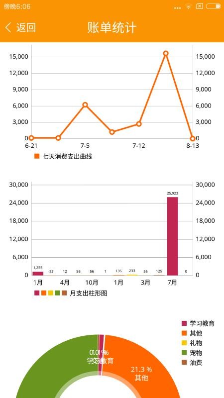 4、进入账单统计版块,通过各种图形快速了解自己的消费情况,掌握消费占比