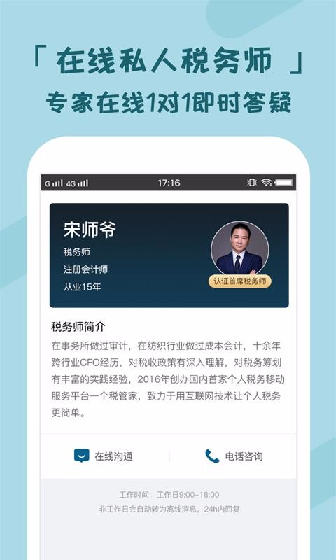 4、在线即可向税务师进行沟通,也可以进行电话咨询;