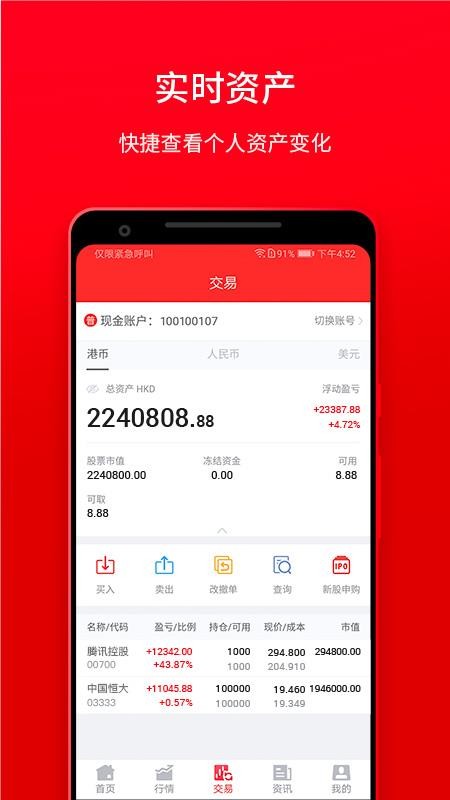 6、支持A股、港股多个交易市场,使用一部手机就可以实现多方面的交易,非常的方便;