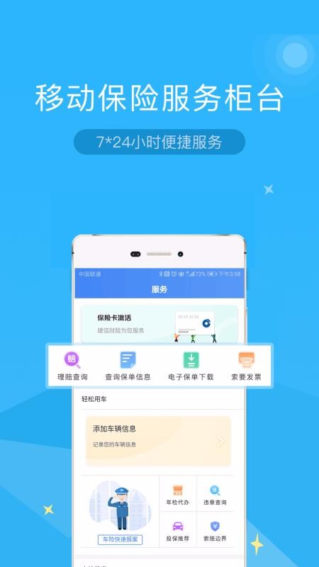 3、是用户的移动保险服务柜台,提供了7*24小时的便捷服务,让你随时享受便捷服务;