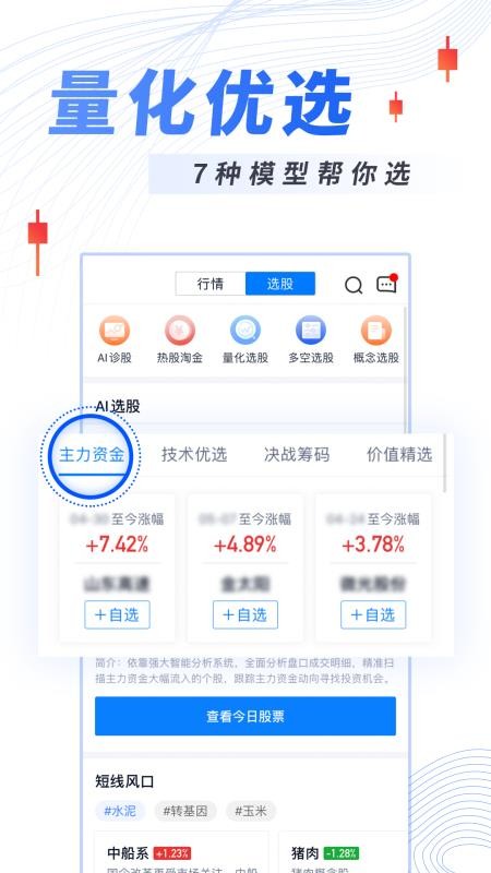 今日诊股是一款强大的理财软件,集金融科技、行情大数据、AI智能于一体,可以准确的分析各种理财数据信息,进入平台能够清楚的查看,帮助你更好的了解理财知识,让用户可以稳定的进行投资交易,获得优质的理财服务;这款软件具有正规的交易平台,可以实时的保护资金的安全,用户可以在平台里放心的进行使用,让你在平台里能够赚取更多的理财收益,解决用户的理财需求;如果你想成为一个投资高手,可以进入到平台里来,通过平台提供的理财信息,更好的进行学习,掌握更多的理财方案,提升用户的投资交易,成为一个理财高手。