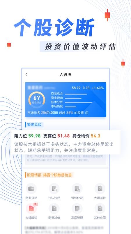1、平台智能的诊断股票的信息,让你能够了解股票的涨跌情况,更好的使用;