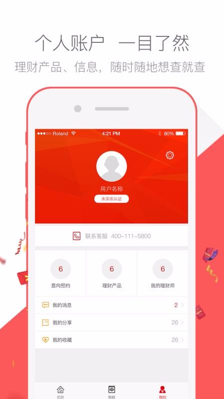 6、统一管理个人账户,知道拥有的理财产品和投资信息,让理财管理更简单;