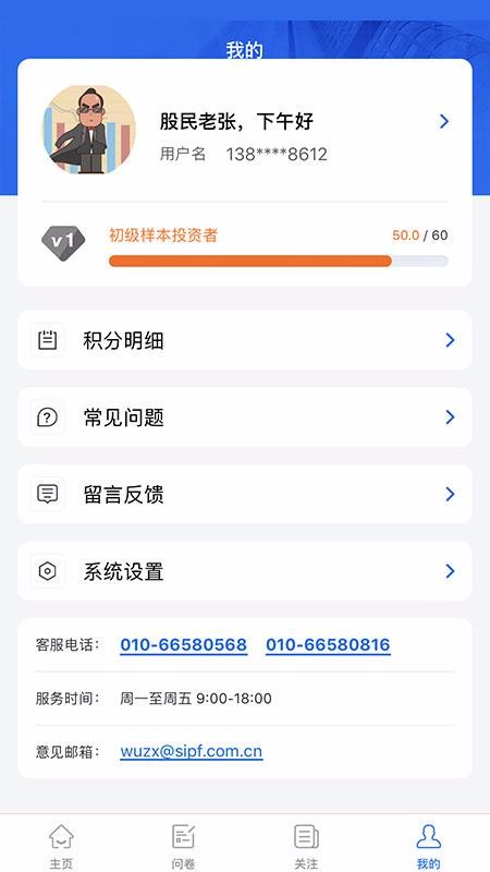 2、实时的样本投资者等级,在个人中心设置了投资者等级展示栏并清晰展示当前等级;