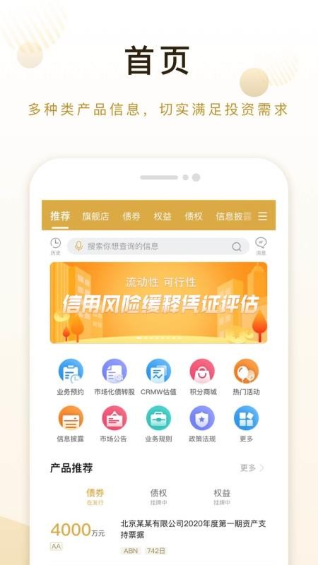 3、提供产品推荐版块,为用户推荐更优质的债券、债权、和权益等各种产品;