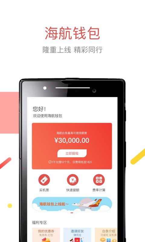 航旅分期app是一款为航旅出行用户提供借款服务软件,软件中提供超高的借款额度,用户可以根据自己的需要选择合适的借款金额,方便用户出行;在上面还设置有福利专区,能够查看白条的介绍,了解白条借款的基本信息,才能够更好的借款;也为用户提供优惠券,你可以领券借款,根据优惠券的情况,相应的减少利息数据,减轻用户的压力;用户可以使用借款的金额购买机票,在上面随时查看航班的情况,找到合适的机票购买,出行更便捷;还提供费率计算专区,进入了解借款费率计算的情况,了解详细的借款信息。