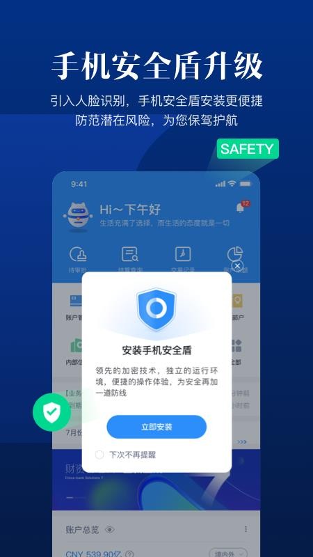 6、提供手机安全盾功能,引入人脸识别功能,保护自己企业的资金财产安全;