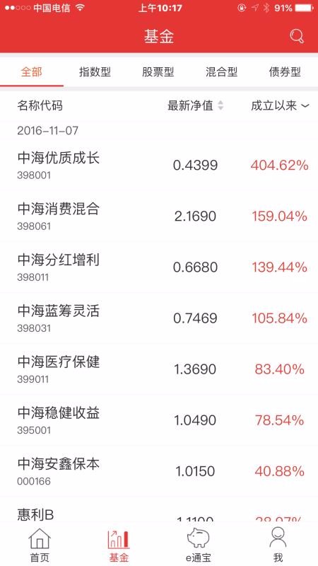 中海基金是一款手机基金理财软件,汇集了手机开户、基金交易、资产查询、账户查询等功能,满足用户各种交易的需求;随时为用户推送折扣产品和热门的投资产品,每个产品都标注了折扣力度和最近六个月的收益;按照指数型、股票型、混合型或债券型即可查看分类推荐的产品,为你显示了名称代码、最新净值和成立以来的收益率;也为用户提供了稳健和风险低的理财产品,投入金额保存后即可自动为你计算收益,该产品支持定期充值和快速取现,随时可以查看持有金额、七天年化收益和当日收益,自行根据情况灵活的进行取现。