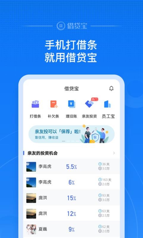 6、你还可以自由选择朋友发布的借款项目匿名出借,获得利息收益,f非常的实用;